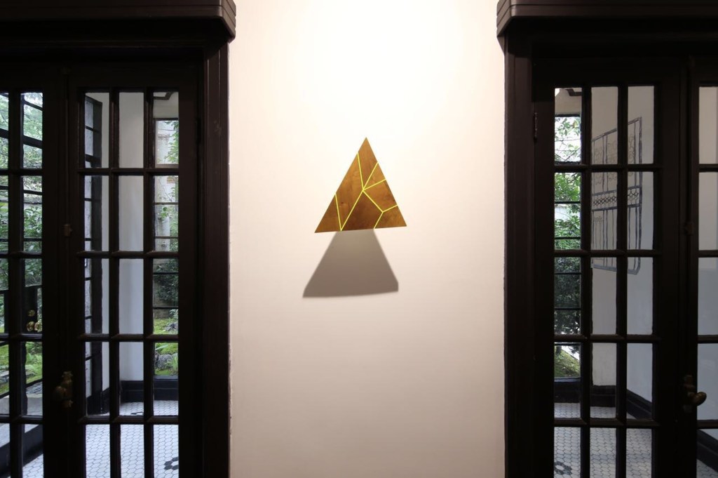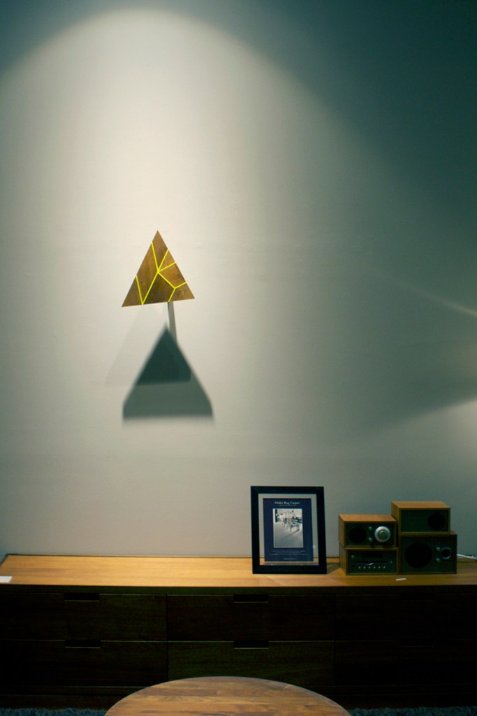 また、床を表す要素として三角形の形を取り入れ、あえて珍しい形を独立して空間に配置しました。こうした構成によって、日常のありふれたオブジェクトに新たな視点を与えることを試みています。