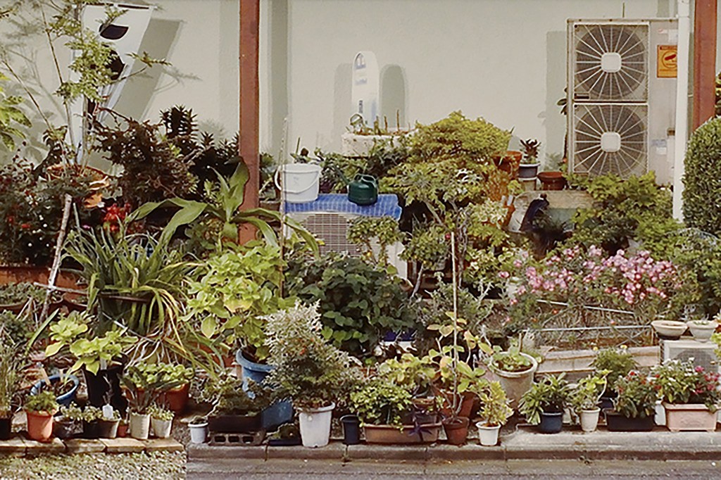 いつも通っている道に置かれている植木たち。植木たちは家を飾るものなのか道を飾るものなのだろうか。「道」と「家」というプライベートとパブリック空間の境界線に置かれる植木たちは、その家だけでなく、その町の風景をも作り出す存在になっている。そんな植木たちがある風景はたわいも無い日常の一場面ではあるが、それが集合した場合どうなるだろう。些細な日常の一場面は非日常的風景を作り出すことができる可能性を持っていることをフレームの中で実践している。