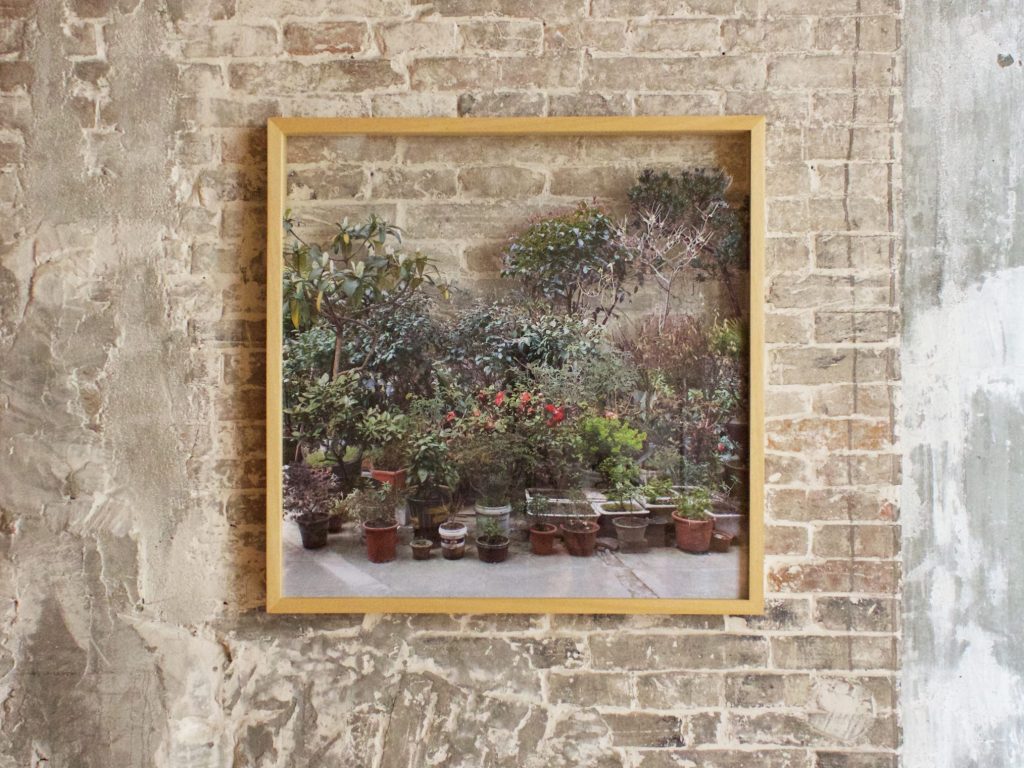 いつも通っている道に置かれている植木たち。植木たちは家を飾るものなのか道を飾るものなのだろうか。「道」と「家」というプライベートとパブリック空間の境界線に置かれる植木たちは、その家だけでなく、その町の風景をも作り出す存在になっている。そんな植木たちがある風景はたわいも無い日常の一場面ではあるが、それが集合した場合どうなるだろう。些細な日常の一場面は非日常的風景を作り出すことができる可能性を持っていることをフレームの中で実践している。