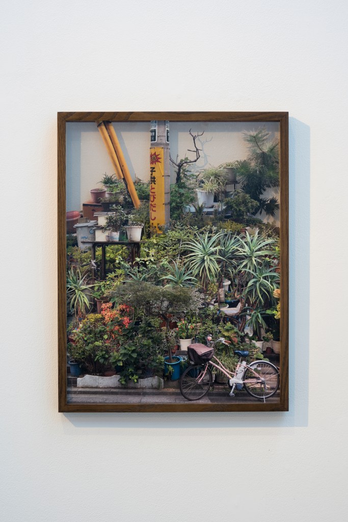 いつも通っている道に置かれている植木たち。植木たちは家を飾るものなのか道を飾るものなのだろうか。「道」と「家」というプライベートとパブリック空間の境界線に置かれる植木たちは、その家だけでなく、その町の風景をも作り出す存在になっている。そんな植木たちがある風景はたわいも無い日常の一場面ではあるが、それが集合した場合どうなるだろう。些細な日常の一場面は非日常的風景を作り出すことができる可能性を持っていることをフレームの中で実践している。